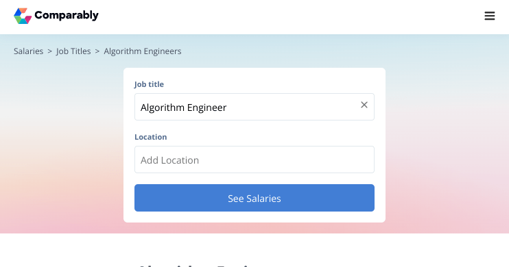 Algorithm Engineer Salary Comparably