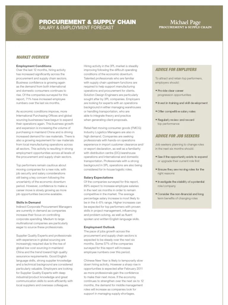 Michael Page Asia 2011 Salary Survey Procurement Employment