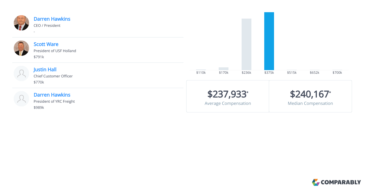 As president and chief operating officer at yellow corp , darrel j. Harris made $805,731 in total. Hurlston includes us$725.0k salary the overall pay is 190% above the industry. Based on our data team's research, darren hawkins is the yrc freight's ceo.
